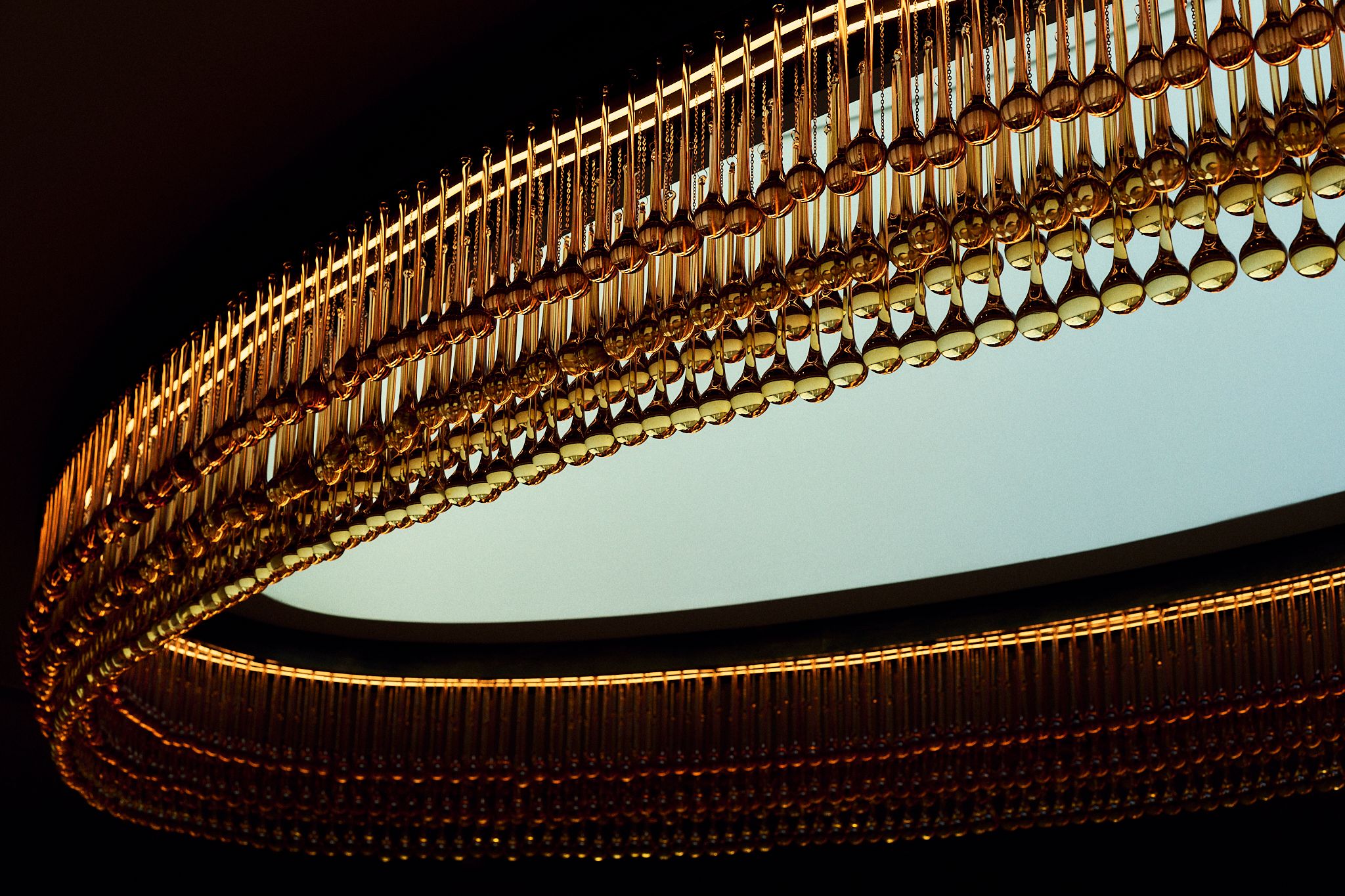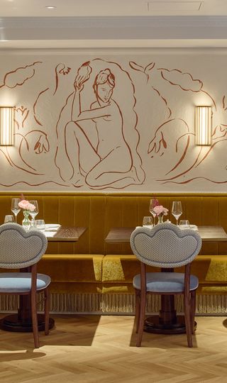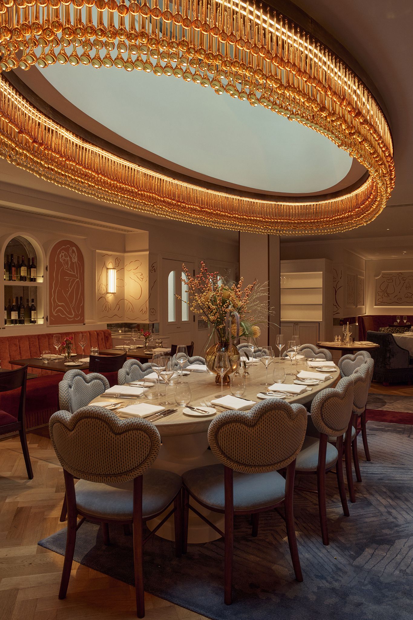 At the heart of The Sloane Club lies Venus, our signature dining room, inspired by the iconic statue of Venus in Sloane Square. Bespoke artwork of the goddess of love and beauty, delicately hand-carved into the walls, enriches the space, while a striking chandelier frames a glass skylight that bathes the room in natural light.